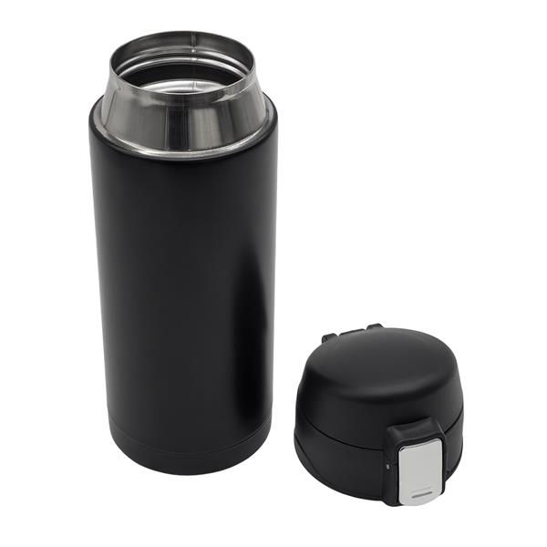 Kubek termiczny o pojemności 340 ml, łączący zalety termosu i klasycznego kubka. Wyposażony w blokadę zabezpieczającą przed przypadkowym otwarciem. Wykonany z wysokiej jakości stali nierdzewnej 18/8, z podwójnymi ściankami i próżnią pomiędzy nimi, co zapewnia doskonałą izolację termiczną. Utrzymuje temperaturę powyżej 40°C do 12 godzin.