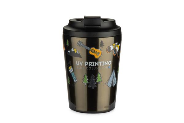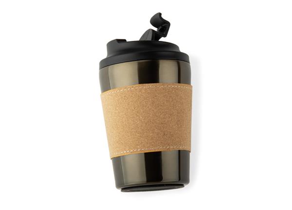 Kubek termiczny CAFFEZ w kolorze gun metal wyróżnia się subtelnym, metalicznym wykończeniem i opaską termiczną wykonaną z włókien mielonej trawy. Wnętrze ze stali nierdzewnej z podziałką ułatwia odmierzanie napoju, a podwójne ścianki utrzymują temperaturę do 3 godzin. Pokrywka typu flip-top z klapką otwieraną do góry sprawia, że korzystanie z kubka jest wygodne w biurze i w podróży. Antypoślizgowa podstawa zapewnia stabilność, a naturalny akcent opaski nadaje całości nowoczesny i stonowany charakter. Produkt można oznakować logo, tworząc funkcjonalny gadżet reklamowy.