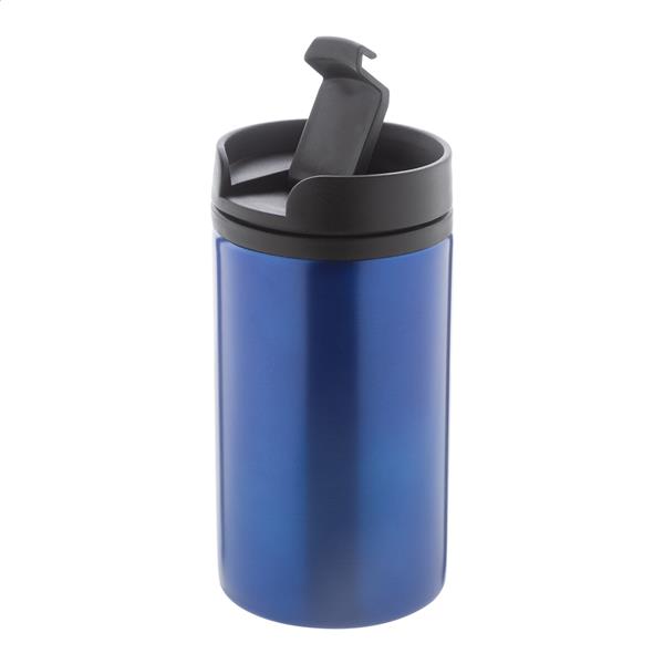 Izolowany kubek termiczny z podwójnymi ściankami, wykonany ze stali nierdzewnej z recyklingu, z wnętrzem z tworzywa sztucznego PP i pokrywką do picia. 250 ml.