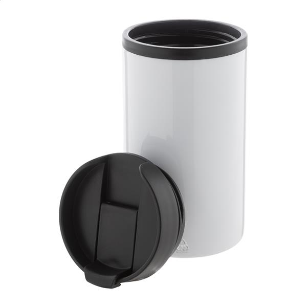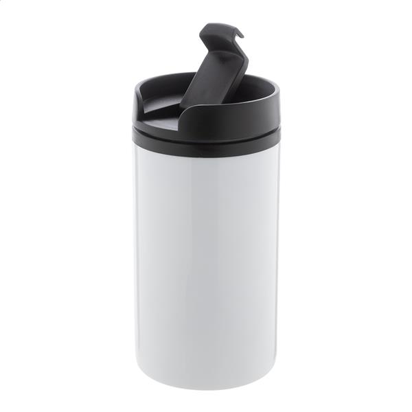 Izolowany kubek termiczny z podwójnymi ściankami, wykonany ze stali nierdzewnej z recyklingu, z wnętrzem z tworzywa sztucznego PP i pokrywką do picia. 250 ml.