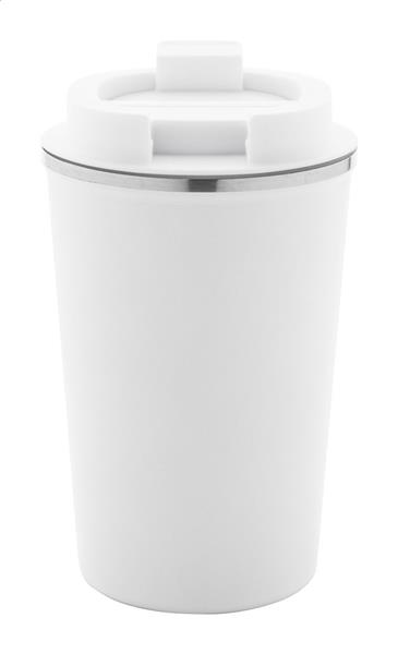 Kubek termiczny z podwójnymi ściankami, wykonany ze stali nierdzewnej z recyklingu, z pokrywką z PP. Pojemność 350 ml.