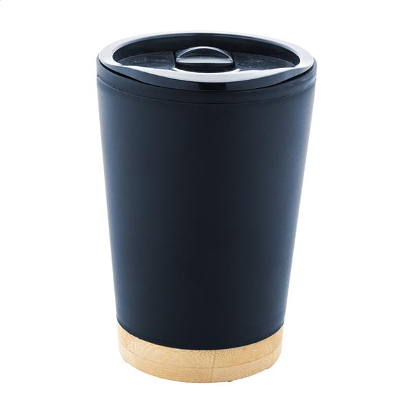 Izolowany kubek termiczny z podwójnymi ściankami, wykonany z tworzywa PP, z pokrywką do picia i bambusową podstawą, 260 ml.