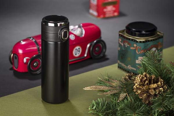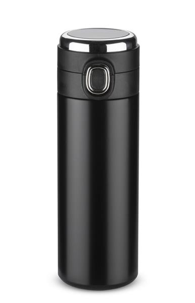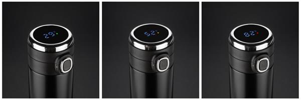 Kubek termiczny FOKS idealnie sprawdzi się w długich podróżach i w codziennym użytkowaniu. Posiada izolację próżniową, dzięki czemu utrzymuje temperaturę napoju do 13 godzin. Posiada również niezwykle wygodną funkcję, jaką jest dotykowy termometr cyfrowy wbudowany w nakrętkę. Wystarczy obrócić kubek do góry dnem na około 10 sekund i dotknąć nakrętki aby odczytać temperaturę napoju. Wnętrze kubka jest wykonane ze stali nierdzewnej o podwyższonym standardzie. Blokada zamknięcia zapobiegnie przypadkowemu otwarciu przykrywki.