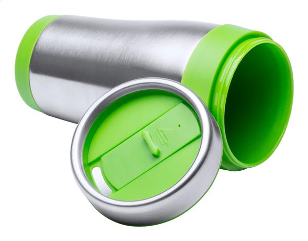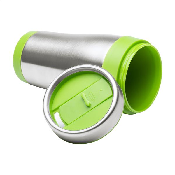 Kubek termiczny ze stali nierdzewnej o podwójnych ściankach z kolorowymi plastikowymi elementami, 450ml. W kartoniku.