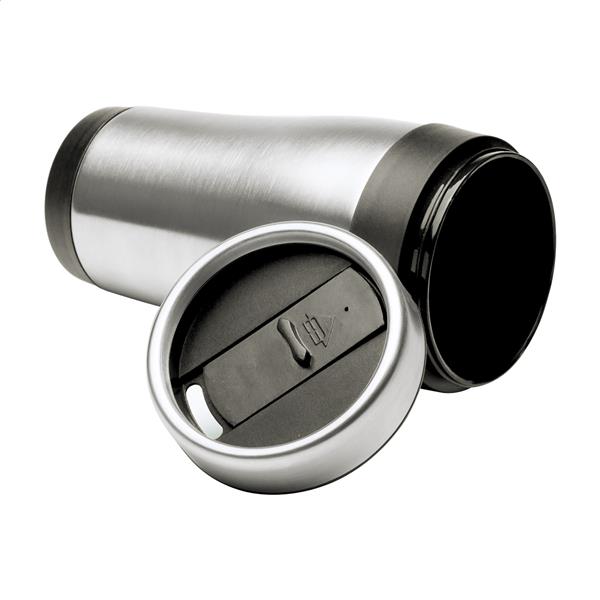 Kubek termiczny ze stali nierdzewnej o podwójnych ściankach z kolorowymi plastikowymi elementami, 450ml. W kartoniku.