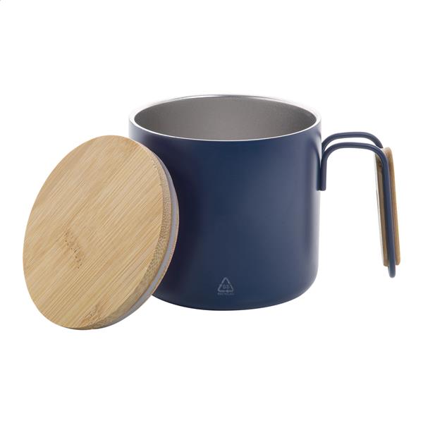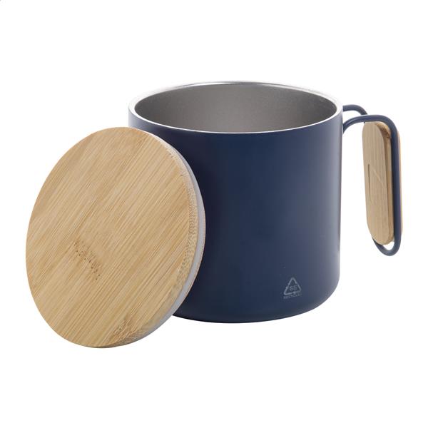 Kubek termiczny ze stali nierdzewnej z recyklingu o podwójnych ściankach, z bambusową pokrywką i uchwytem. 300ml.