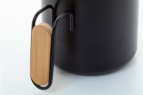 Kubek termiczny ze stali nierdzewnej z recyklingu o podwójnych ściankach, z bambusową pokrywką i uchwytem. 300ml.