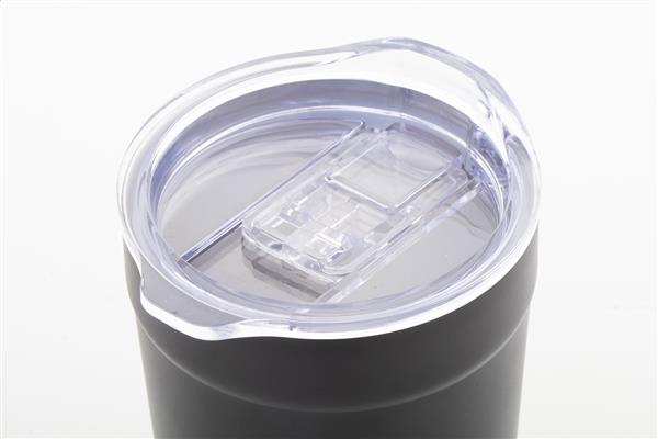 Kubek termiczny o podwójnych ściankach, izolowany próżniowo ze stali nierdzewnej pochodzącej z recyklingu, z bambusową podstawą i plastikową pokrywką do picia AS. 600ml.