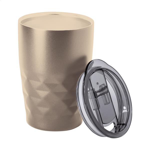 Kubek termiczny ze stali nierdzewnej o podwójnych ściankach, izolowany próżniowo miedzią z plastikową pokrywką do picia. 350ml. Izolacja miedziana utrzymuje temperaturę napojów gorących przez 12 godzin i zimnych przez 24 godziny.