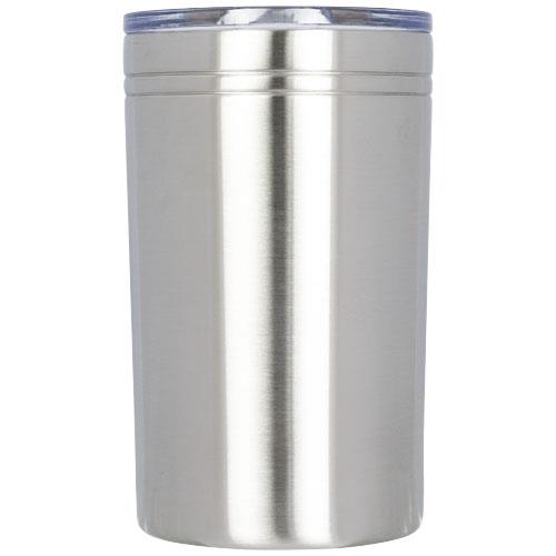 Kubek o podwójnych ściankach, izolowany próżniowo. Przeźroczyste, wciskane wieczko z przesuwanym zamknięciem. Działa jak kubek lub termos. Pojemność 330ml.