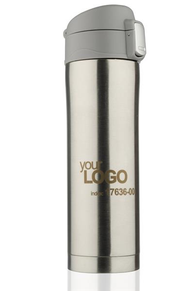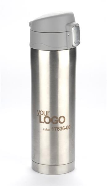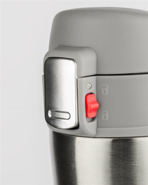 Kubek LOCK to najlepsze cechy kubka termicznego i termosu w jednym produkcie. Wygodny rozmiar i ustnik, z którego można łatwo pić, połączone są z całkowicie szczelnym zamknięciem nieprzepuszczającym cieczy oraz doskonałą termoizolacją. Dzięki próżni między ściankami kubek trzyma temperaturę ok. 13 godzin. W produkcie zastosowano nowatorską blokadę zamka, która zabezpiecza kubek przed przypadkowym otwarciem. Wnętrze wykonane ze stali, pojemność kubka to 440 ml. Znakowanie możliwe na korpusie kubka.