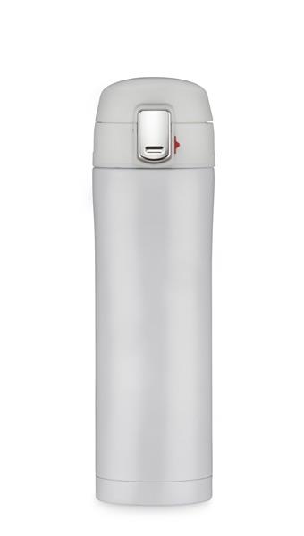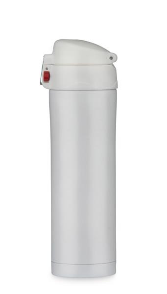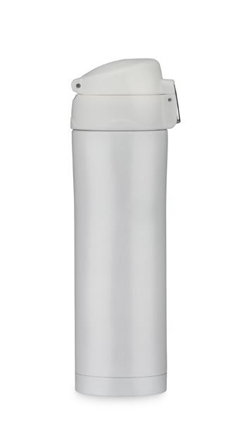 Kubek termiczny LOCK MAT o pojemności 440 ml to niezawodny towarzysz w podróży i w biurze. Dzięki podwójnej ściance z izolacją próżniową utrzymuje temperaturę napojów przez długi czas, a zewnętrzna powierzchnia nie nagrzewa się, chroniąc dłonie przed oparzeniem. Pokrywka typu flip-top z klapką otwieraną od góry pozwala na wygodne picie i szczelne zamknięcie – kubek nie przecieka nawet w torbie. Mechanizm otwierania „naciśnij” ułatwia obsługę jedną ręką. Matowe wykończenie nadaje mu nowoczesny wygląd, a nowe kolory sprawiają, że łatwo dopasować go do identyfikacji wizualnej marki. Produkt można oznakować logo, tworząc praktyczny i estetyczny gadżet reklamowy.