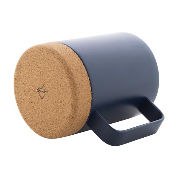 Kubek termiczny pod sublimacje ze stali nierdzewnej z podwójną ścianką, z pokrywką z ustnikiem i podstawą z naturalnego korka, 330 ml. W kartoniku.