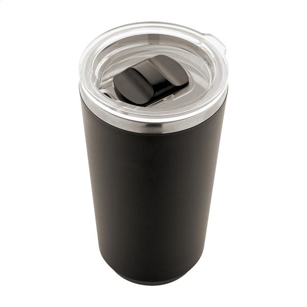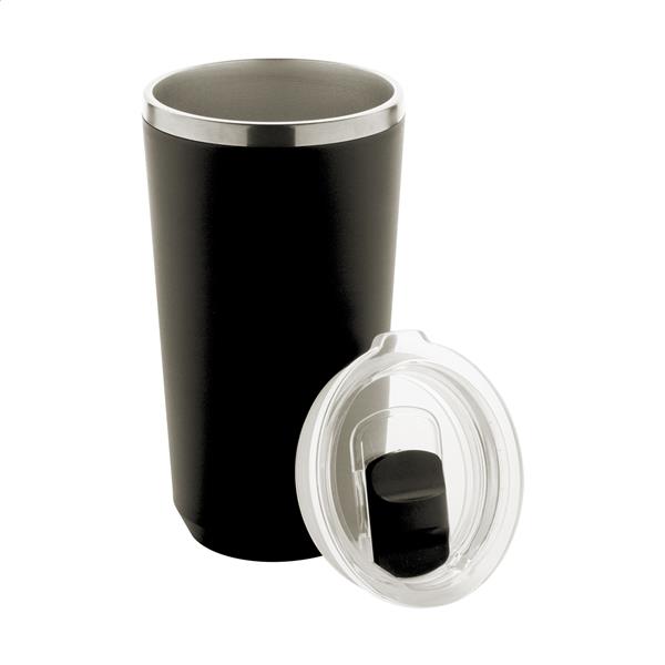 Kubek termiczny ze stali nierdzewnej, pokryty tworzywem PP, z podwójnymi ściankami i pokrywką do picia. 500 ml