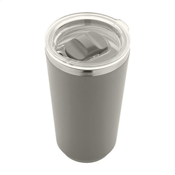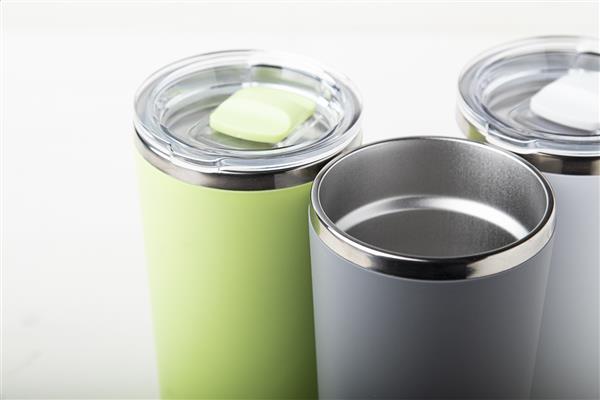 Kubek termiczny ze stali nierdzewnej, pokryty tworzywem PP, z podwójnymi ściankami i pokrywką do picia. 500 ml