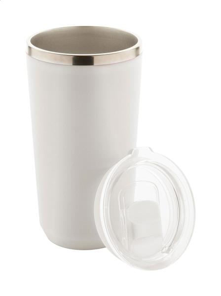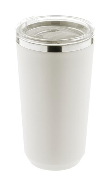 Kubek termiczny ze stali nierdzewnej, pokryty tworzywem PP, z podwójnymi ściankami i pokrywką do picia. 500 ml