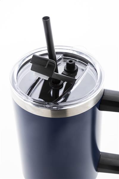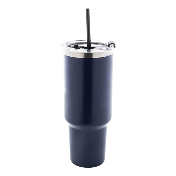 Kubek termiczny z podwójną ścianką, izolowany próżniowo, wykonany ze stali nierdzewnej z recyklingu, z pokrywką z polistyrenu (PS) i słomką z polipropylenu (PP). 1200 ml.