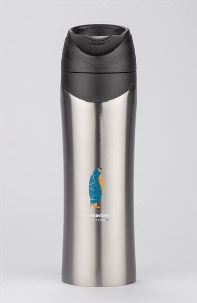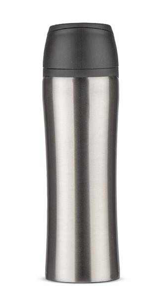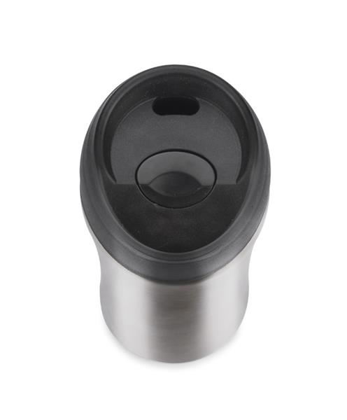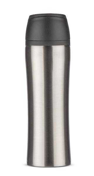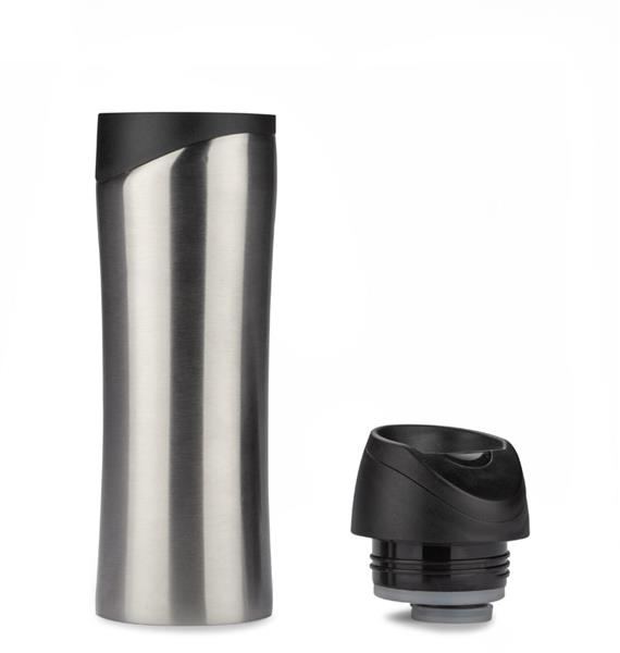 Kubek MIKE to produkt łączący w sobie cechy kubka termicznego i termosu. Cechuje się wysoką termoizolacją, trzymając temperaturę napoju ok. 10 godzin. Wygodny ustnik, otwierany systemem click pozwala swobodnie się napić, a także zapewnia wysoką szczelność. Wykonany ze stali nierdzewnej.