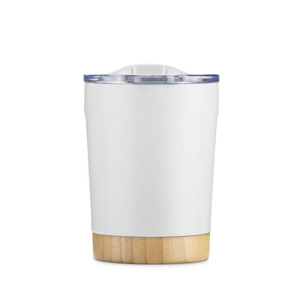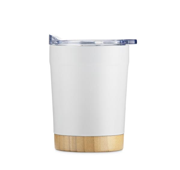 Kubek termiczny MOKU 300 ml to stylowe i funkcjonalne rozwiązanie do kawy na wynos. Wykonany z materiału pochodzącego z recyklingu, posiada podwójną ściankę z izolacją próżniową, która skutecznie utrzymuje temperaturę napoju. Bambusowa podstawa nadaje mu naturalny charakter, a przezroczysta pokrywka typu slide lid z przesuwanym ustnikiem pozwala pić wygodnie i bez ryzyka rozlania. Kompaktowa pojemność sprawia, że świetnie sprawdza się w biurze, samochodzie lub w podróży.