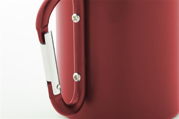 Kubek termiczny z podwójną ścianką ze stali nierdzewnej z recyklingu. Z karabińczykiem z aluminium pochodzącego z recyklingu w dopasowanym kolorze. 300 ml. W kartoniku.