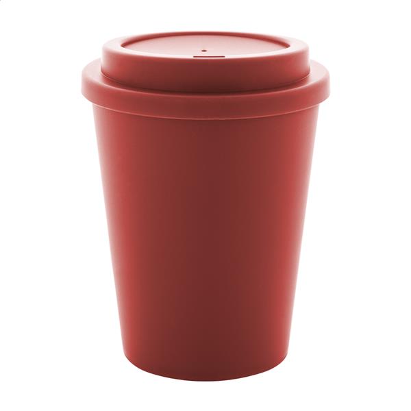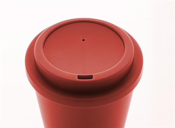 Kubek termiczny z podwójnymi ściankami, wykonany z tworzywa PP, z pokrywką do picia. Pojemność 300 ml.