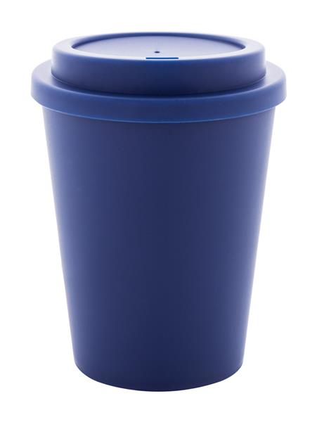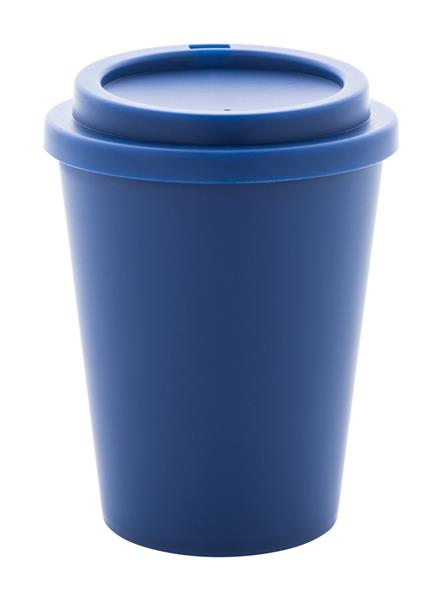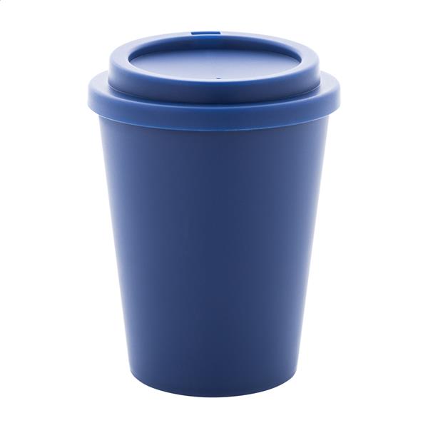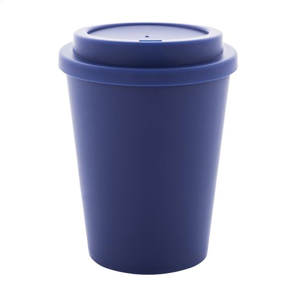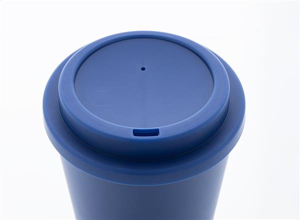 Kubek termiczny z podwójnymi ściankami, wykonany z tworzywa PP, z pokrywką do picia. Pojemność 300 ml.