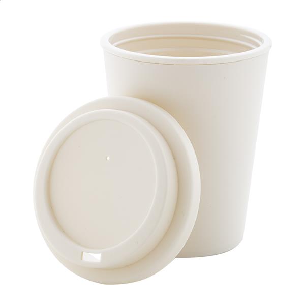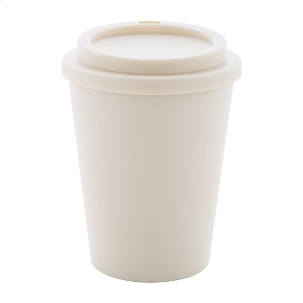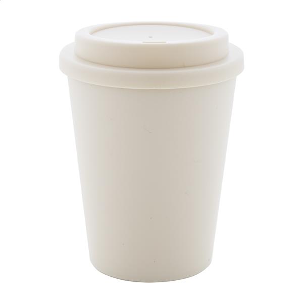 Kubek termiczny z podwójnymi ściankami, wykonany z tworzywa PP, z pokrywką do picia. Pojemność 300 ml.