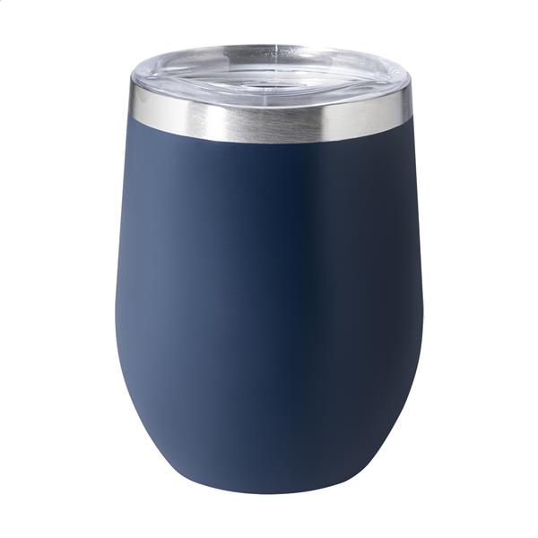 Kubek termiczny ze stali nierdzewnej o podwójnych ściankach z recyklingu i plastikową pokrywką do picia. 350ml.