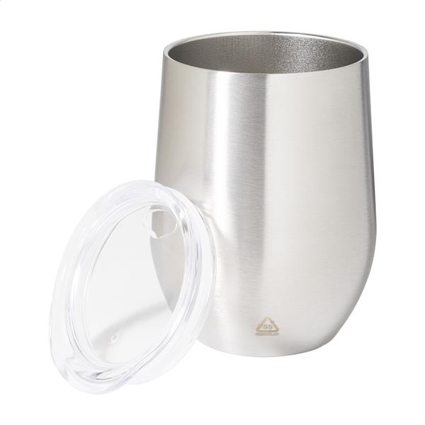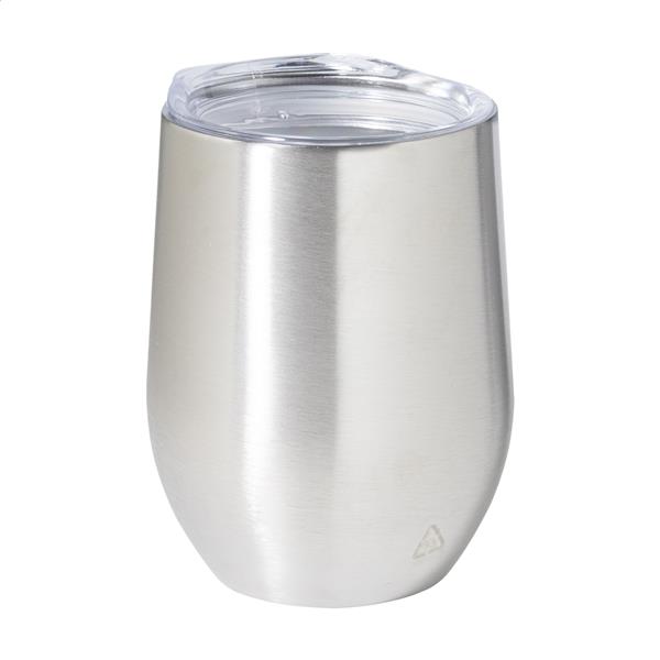 Kubek termiczny ze stali nierdzewnej o podwójnych ściankach z recyklingu i plastikową pokrywką do picia. 350ml.