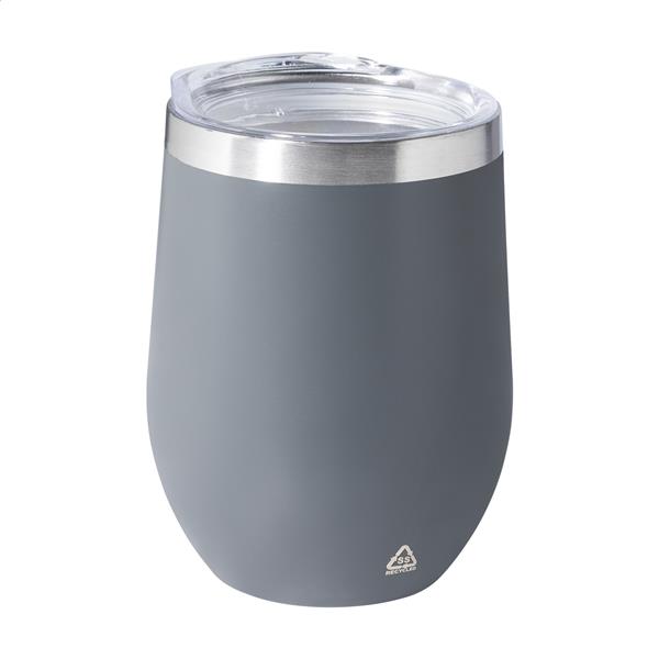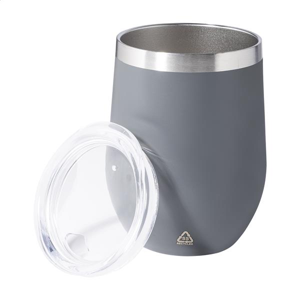 Kubek termiczny ze stali nierdzewnej o podwójnych ściankach z recyklingu i plastikową pokrywką do picia. 350ml.