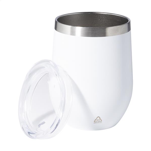 Kubek termiczny ze stali nierdzewnej o podwójnych ściankach z recyklingu i plastikową pokrywką do picia. 350ml.