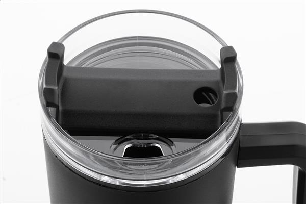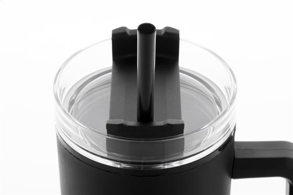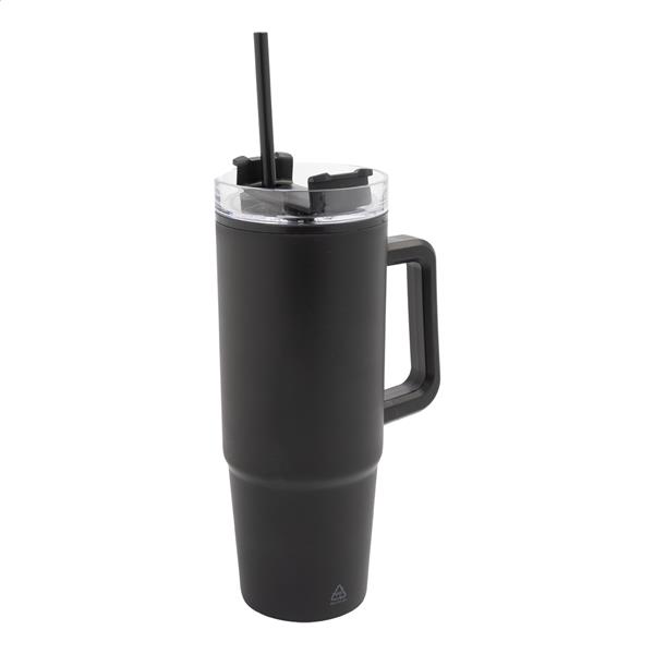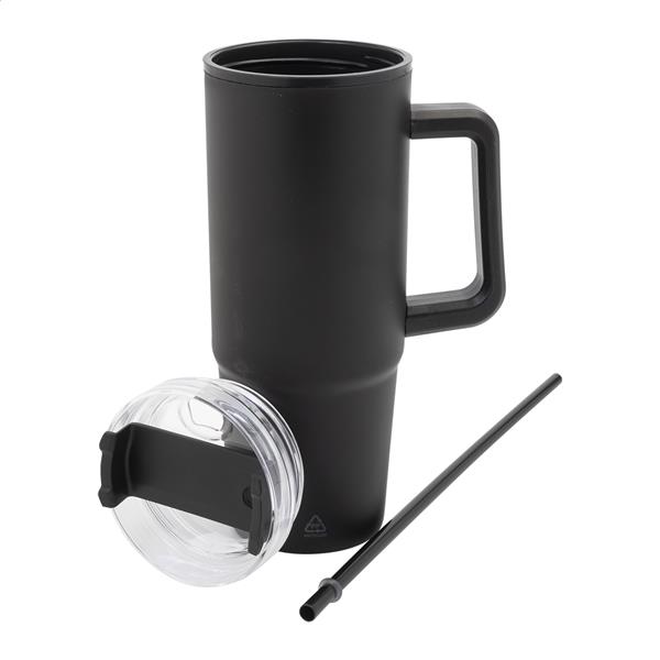 Kubek termiczny z podwójnymi ściankami, izolowany tworzywem PP z recyklingu, z plastikową pokrywką do picia i słomką. 900ml.