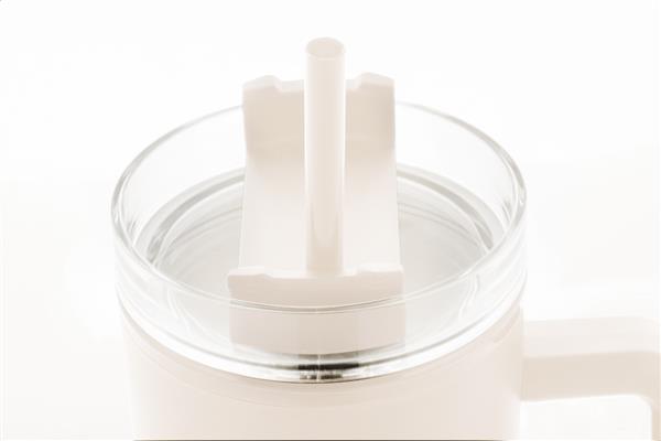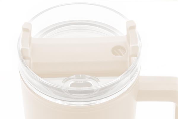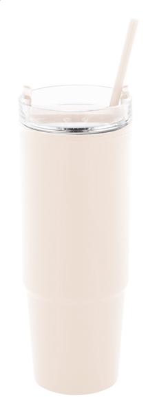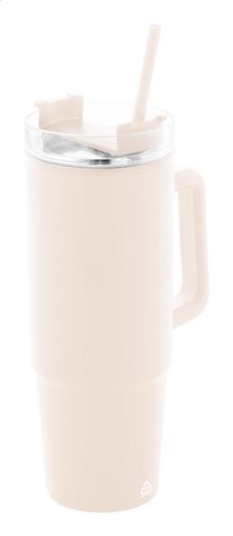 Kubek termiczny z podwójnymi ściankami, izolowany tworzywem PP z recyklingu, z plastikową pokrywką do picia i słomką. 900ml.