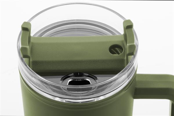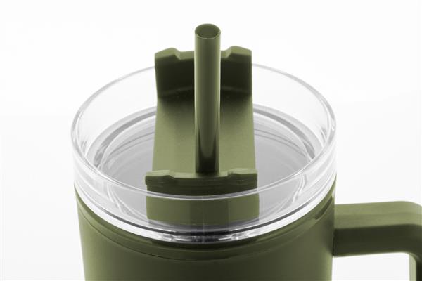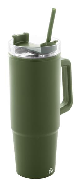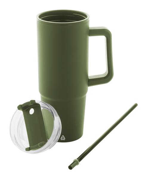 Kubek termiczny z podwójnymi ściankami, izolowany tworzywem PP z recyklingu, z plastikową pokrywką do picia i słomką. 900ml.