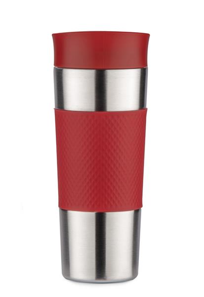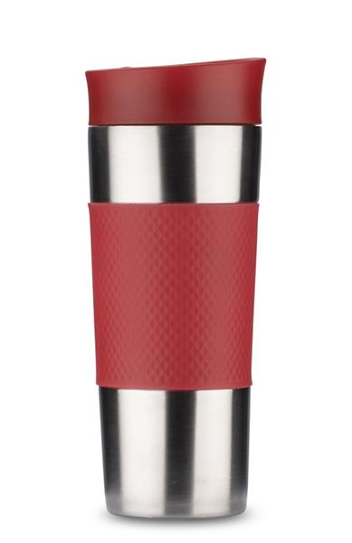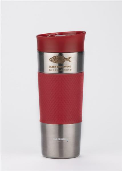 Kubek termiczny RONDE to gadżet praktyczny, wygodny i funkcjonalny. Gumowa opaska na kubku zapewnia pewny i komfortowy chwyt. Posiada zamknięcie z systemem click, który zapewnia szczelność i wygodę picia z każdej strony. Kubek wykonany ze stali nierdzewnej. Gumowa opaska w kolorystyce zamknięcia.