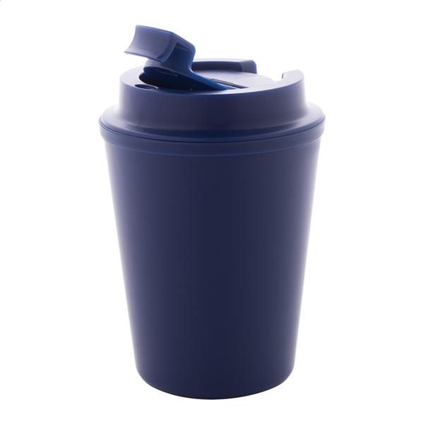 Kubek termiczny z podwójnymi ściankami, izolowany tworzywem PP z recyklingu, z pokrywką do picia. 300ml.