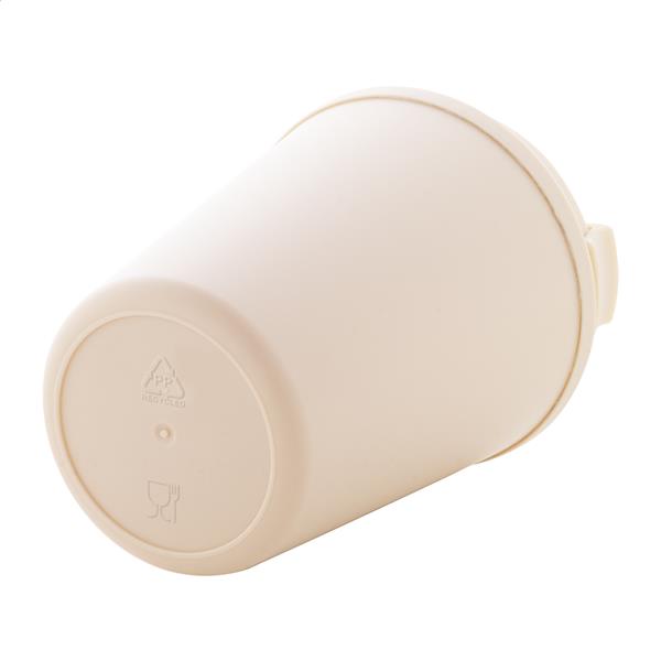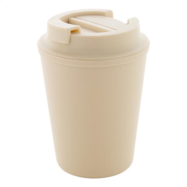 Kubek termiczny z podwójnymi ściankami, izolowany tworzywem PP z recyklingu, z pokrywką do picia. 300ml.