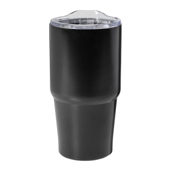 Dwuścienny, izolowany próżniowo kubek termiczny ze stali nierdzewnej z recyklingowaną pokrywką z tworzywa PS. 600 ml.