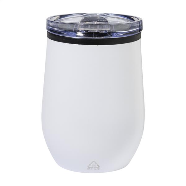 Kubek termiczny z podwójnymi ściankami, wykonany ze stali nierdzewnej z recyklingu, z wnętrzem z PP i pokrywką z polistyrenu. 350 ml.