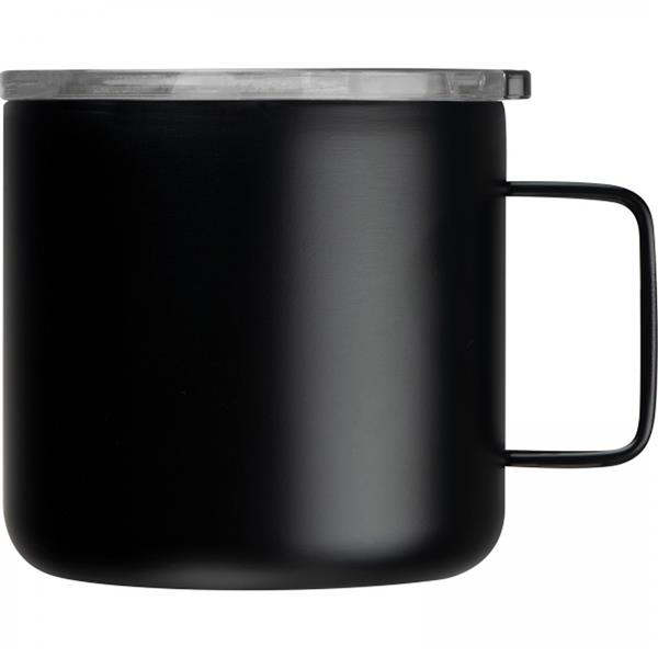Kubek o podwójnych ściankach (izolacja próżniowa) ze stali nierdzewnej, z plastikową pokrywką. Pojemność 300ml.