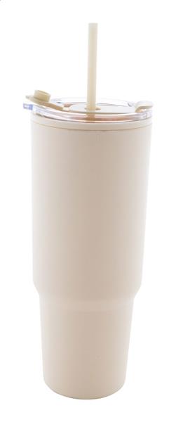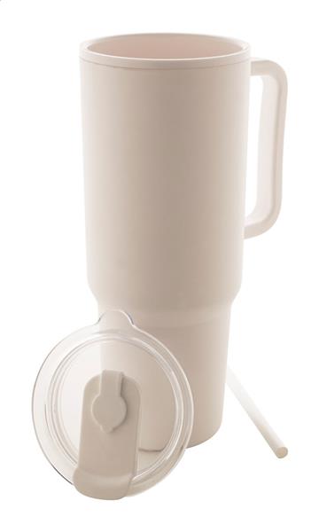 Izolowany kubek termiczny z podwójnymi ściankami, wykonany z tworzywa PP, z pokrywką i słomką. Pojemność 1100 ml.
