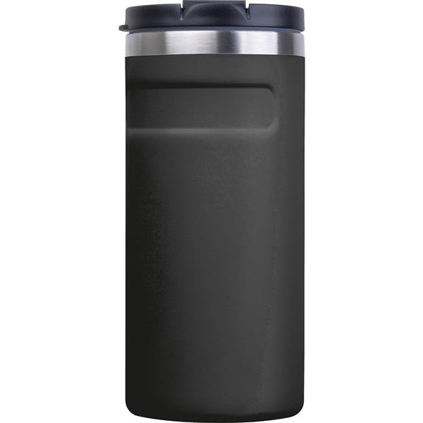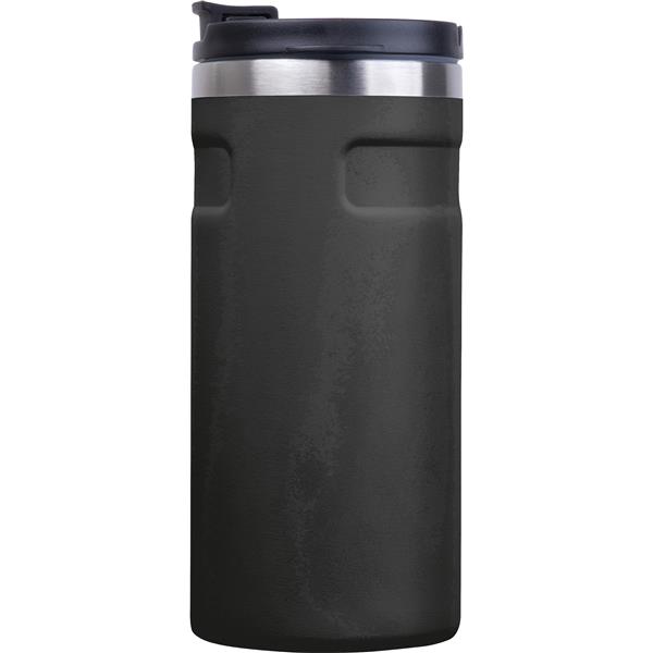 Kubek do picia o pojemności 450 ml, z podwójnymi ściankami, wykonany ze stali nierdzewnej z recyklingu, wyposażony w szczelne, zapobiegające wyciekom zamknięcie.