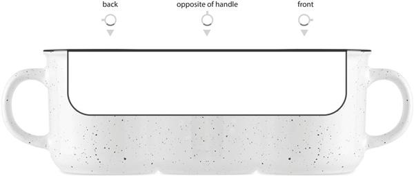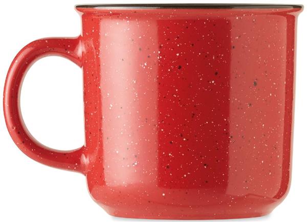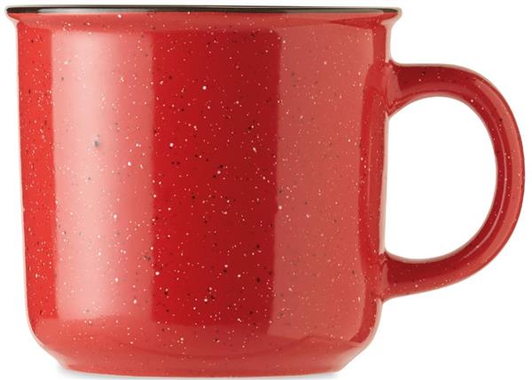 Duży ceramiczny kubek w stylu vintage. Ze względu na nakrapiany wzór, na nadrukowanym logo będą widoczne plamki. Pojemność: 400 ml.