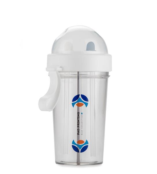 DUI 420 ml to praktyczny pojemnik z dwiema niezależnymi komorami, umożliwiający przechowywanie dwóch różnych napojów jednocześnie. Wbudowane słomki ze składanymi ustnikami (biały i czarny) pozwalają na wygodne picie bez mieszania płynów. Zakręcana obręcz z silikonowym uchwytem zapewnia pewny chwyt, a pokrywka umożliwia zamknięcie bidonu, gdy słomki są złożone.