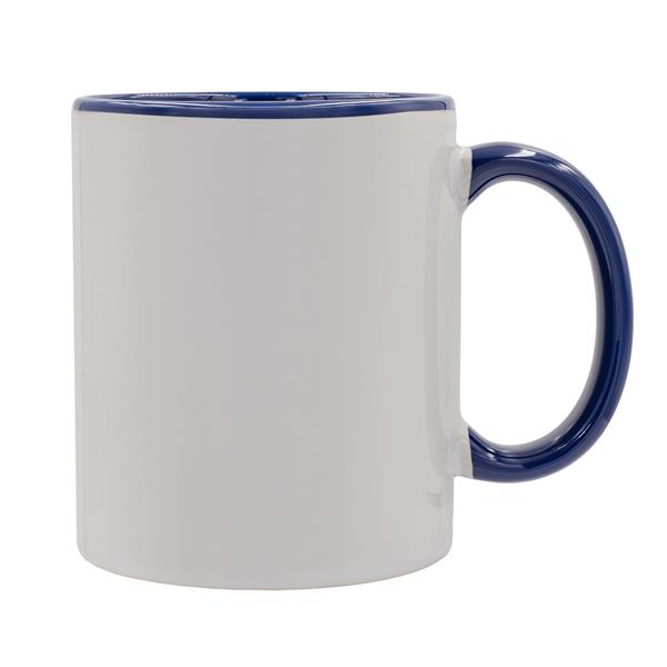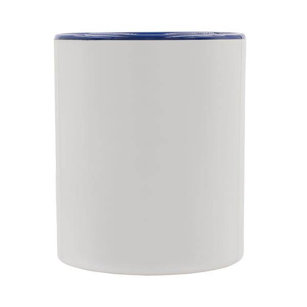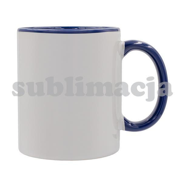 Kubek ceramiczny o pojemności 330 ml, przygotowany pod nadruk sublimacyjny, z kolorowym uchwytem i wnętrzem.