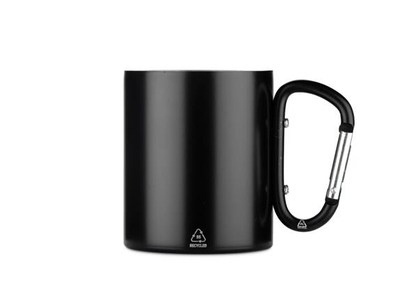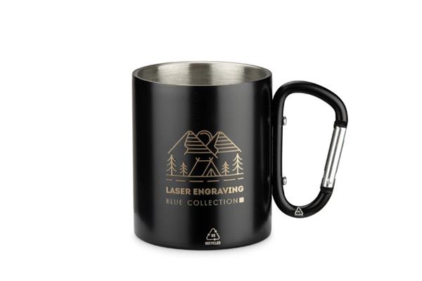 Kubek VIVO o pojemności 250 ml został wykonany z recyklingowanej stali nierdzewnej, a jego uchwyt w formie karabińczyka – z recyklingowanego aluminium. Matowe wykończenie nadaje mu nowoczesny wygląd, a karabińczyk umożliwia łatwe przypięcie kubka do plecaka lub torby. Praktyczny w podróży, podczas biwaku czy spaceru, stanowi atrakcyjny gadżet promocyjny i doskonały wybór dla osób ceniących świadome rozwiązania.