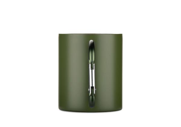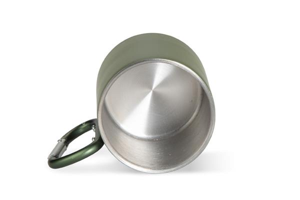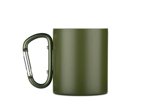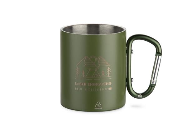Kubek VIVO o pojemności 250 ml został wykonany z recyklingowanej stali nierdzewnej, a jego uchwyt w formie karabińczyka – z recyklingowanego aluminium. Matowe wykończenie nadaje mu nowoczesny wygląd, a karabińczyk umożliwia łatwe przypięcie kubka do plecaka lub torby. Praktyczny w podróży, podczas biwaku czy spaceru, stanowi atrakcyjny gadżet promocyjny i doskonały wybór dla osób ceniących świadome rozwiązania.