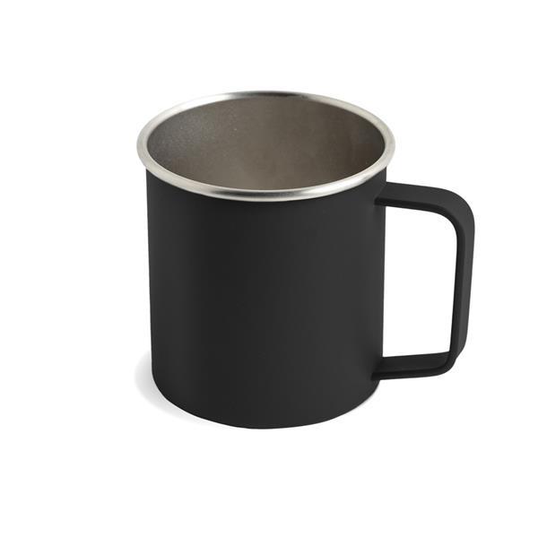 Kubek ze stali z recyklingu 400 ml. Idealny do użytku w pomieszczeniach i na zewnątrz, ten metalowy kubek wykonany z materiałów z recyklingu ma nowoczesny i łatwy w użyciu design.
