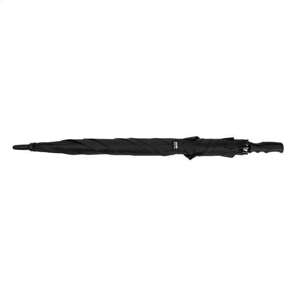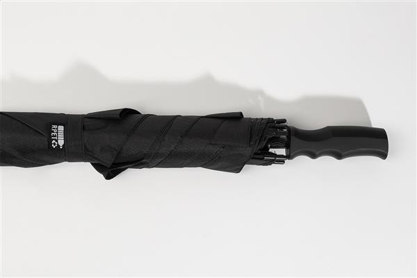 Duży, automatyczny, wiatroodporny, kwadratowy parasol z trzonkiem i ramą z włókna szklanego, gumowaną rączką ABS. Pongee 190T RPET. Z charakterystyczną etykietą RPET.