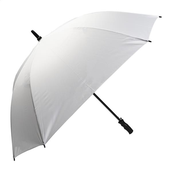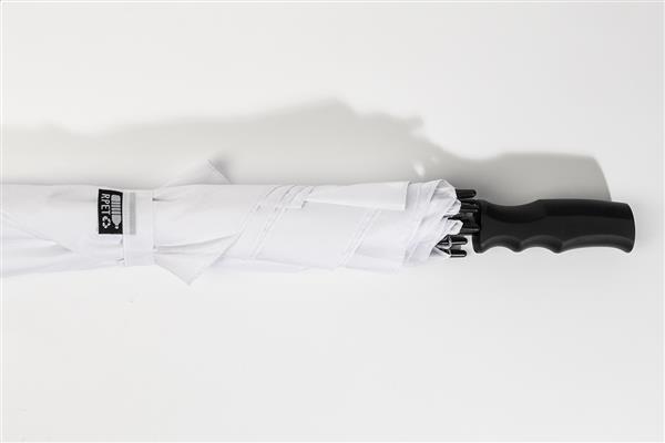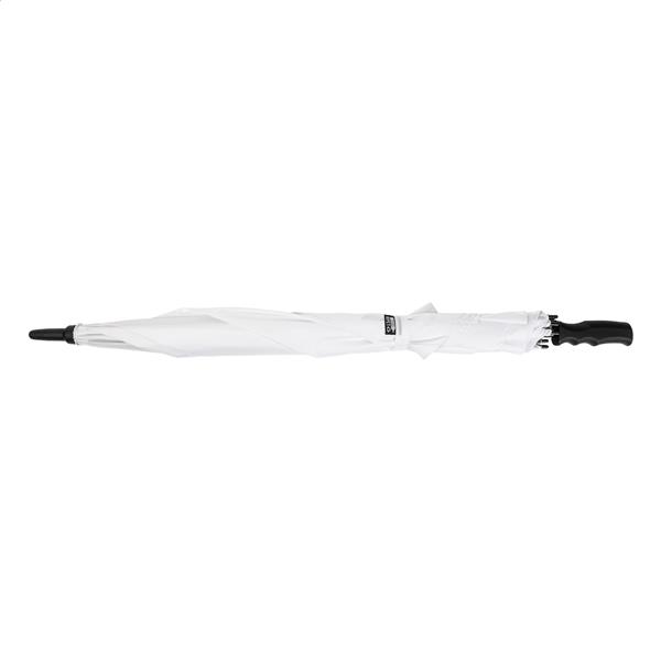 Duży, automatyczny, wiatroodporny, kwadratowy parasol z trzonkiem i ramą z włókna szklanego, gumowaną rączką ABS. Pongee 190T RPET. Z charakterystyczną etykietą RPET.